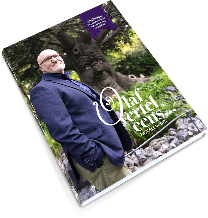 “Dit is het dan: Olaf, vertel eens…, het nieuwste boek van mijn schoonzus Pascale Vugts, waarin ze in 25 meeslepende verhalen over mijn persoonlijke loopbaan schrijft. Van mijn start als Efteling vakantiewerker en mijn voetbalcarrière naar een mooie tijd bij Avonturenpark Hellendoorn. Van mijn rol als Directeur Imagineering naar het 24/7 beschikbaar maken van het merk Efteling voor de doelgroepen maar ook de ontwikkeling met bijkomende risico’s van de Winter Efteling.